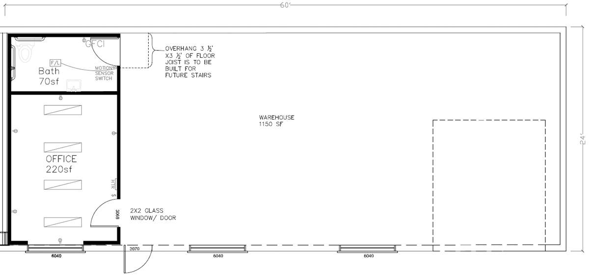 | 60' Wide x 24' Deep | Yes | Yes | $2,185.00 / Month + $150.00 NNN |